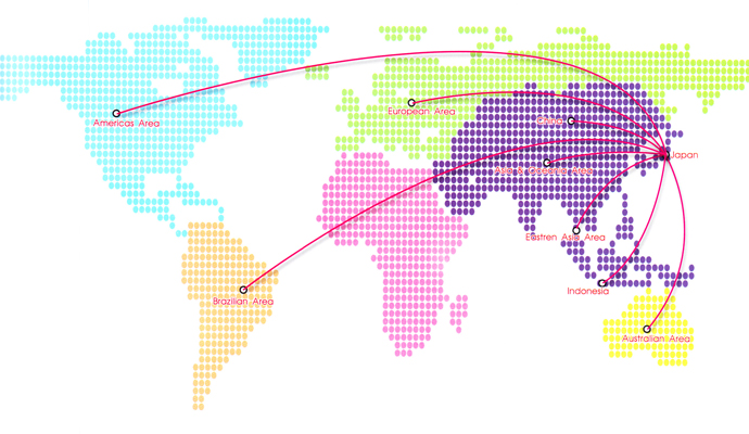 The Toyo Ink Group has a worldwide business network of 70 Group companies in 23 countries. With close cooperation among bases in Japan and abroad, the Group aims to become a leading company in the field of speciality chemicals, considering lifestyles in different countries and regions from a global perspective.